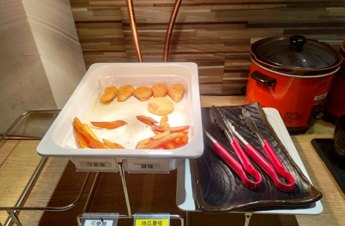 炸物點心 炸蝦天婦羅、薯條、港式燒賣 炸蝦粉不會裹太厚,趁熱吃酥脆。燒賣表現中規中矩。