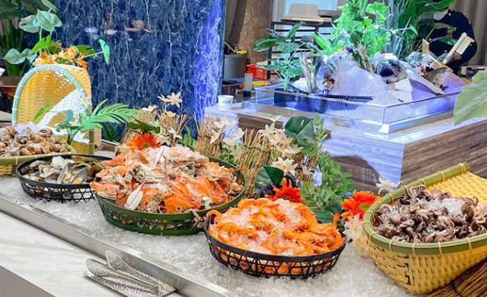 海鮮盛宴 新鮮生魚片、旭蟹/三點蟹(季節)、現燙鮮蝦、淡菜 海鮮區是重點!生魚片品質穩;螃蟹要看季節供應。