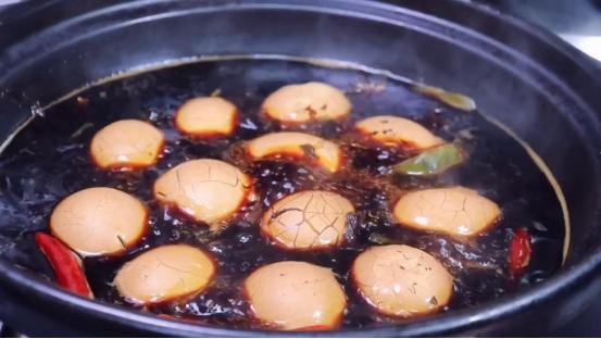 7、在對雞蛋進行滷煮的時候,我們要用小火慢慢去滷,在小火的持續加熱下,雞蛋才會融入各種料汁的香味。