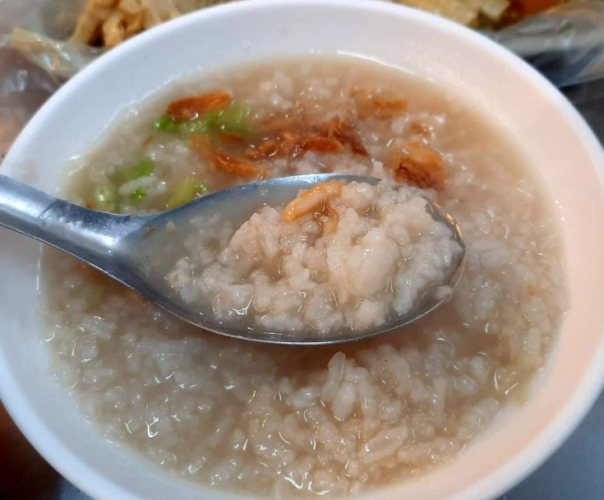 鹹粥是用生米熬煮,米粒開花,湯頭鮮美,裡面有蚵仔、肉絲、芹菜珠、油蔥酥,料給得大方。一定要點幾樣小菜配,尤其是滷筍絲,入味不死鹹;煎蔥蛋厚實香噴噴。滷肉飯也意外好吃,肥瘦適中。缺點是位置超難找,市場環境濕滑,蒼蠅有點多,衛生要求高的人可能卻步。