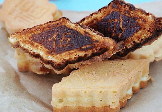 這家是夏日救星!把剛出爐、還熱呼呼的雞蛋糕(通常是做成像貝殼或小圓餅狀,可以夾起來),直接剖開,夾進一大球冰淇淋!冰火交融的口感超級過癮!雞蛋糕的熱度會微微融化冰淇淋表層,形成一種濃稠的醬汁感,配上外皮微酥、內部柔軟的蛋糕體,層次超豐富。冰淇淋口味通常有香草、巧克力、草莓、芒果(季節限定)等基本款,有些老闆會用知名品牌的冰淇淋。我特別推薦夾香草或巧克力,經典不敗!夏天午後,來一份這個,暑氣全消,幸福感爆棚。缺點就是要吃得快,否則冰淇淋融化會很狼狼狼狽。售價通常比其他純雞蛋糕高一些(因為加了冰淇淋)。適合想嘗試新奇吃法、喜歡冰火口感、或是夏天想消暑的人。當飯後甜點或下午茶都很棒!