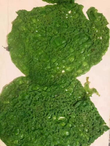 豆芥是用大米和絲瓜葉磨成米漿,然後攤到鍋裡烤熟而成。色澤碧綠,植物清香味沁人心脾。吃起來鹹淡適中,風味獨具,十分具有特色。