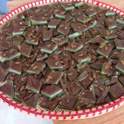 糖洋糕也是千層糕,用大米、紅糖、絲瓜葉、葡萄乾等一起製作而成的風味美食。香味濃郁,口感軟糯且富有彈性。甜而不膩,別是一番滋味,讓人回味。