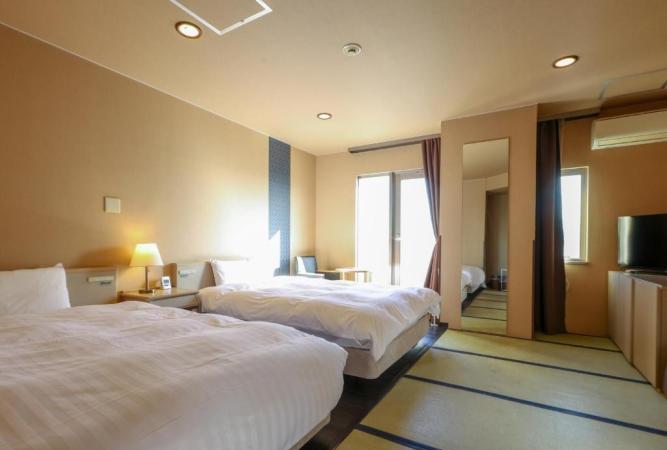 飯店就在車站對面、房間還算寬敞、屋頂有大眾浴場,這家有年代感的酒店價格還挺便宜。幸好房間與各方面清潔維護都非常好,整體環境也還不差,我相信絕對會讓你有撿到寶的感覺。