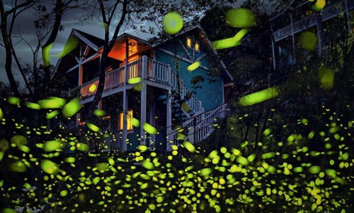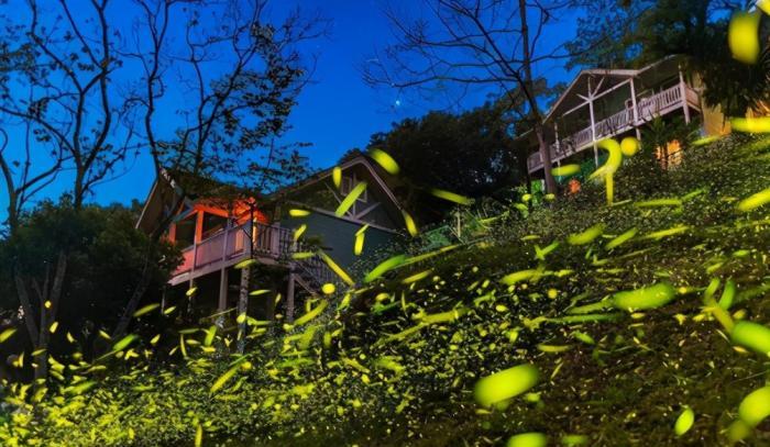 位於嘉義梅山的「遇見彩虹生態村 」,每年3到6月都會有滿天飛舞的螢火蟲,點亮夏天的夜晚!這裡更被稱為「全臺灣螢火蟲密度最高」的地方唷!園區除了有螢火蟲,更可以看到其餘豐富的生態,不管是青蛙、野生鳥類...等都可以看到,完全就是大自然戲水必須打卡地方!