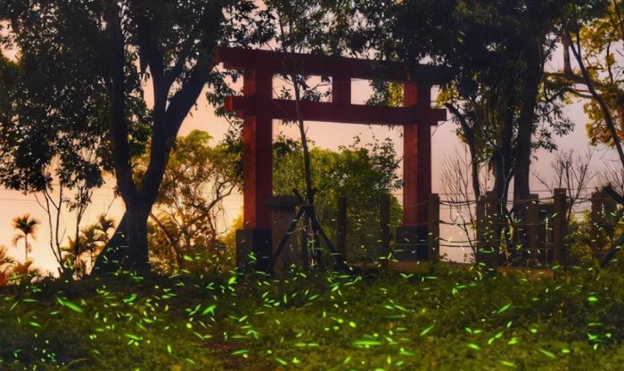而那瑪夏山區有多達20種螢火蟲唷!只要在夏季太陽下山後,天色漸漸變暗就能看到一隻只的螢火蟲在草叢裡發光,若要前往這裡,請務必找個很會拍照的朋友XD,因為覺美螢火蟲搭配鳥居實在過於美麗了啦!實在美到讓人捨不得眨眼,大家出發前,務必將攝影器材帶好帶滿XD。
